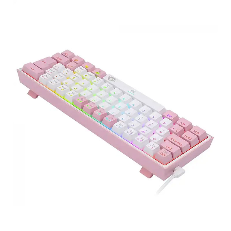 کیبورد گیمینگ ردراگون FIZZ K617 RGB White-Pink یک کیبورد مکانیکی با طراحی زیبا و خاص است که مخصوص گیمرها و کاربران حرفهای طراحی شده است. این کیبورد دارای نورپردازی RGB قابل تنظیم با رنگهای متنوع است که میتوانید جلوههای نوری را شخصیسازی کنید و فضای گیمینگ خود را زیباتر کنید. کلیدهای مکانیکی این کیبورد با پاسخدهی سریع و دقت بالا، برای بازیهای سریع و تایپ دقیق بسیار مناسب هستند. رنگ سفید و صورتی این مدل ظاهری متفاوت و شیک دارد که میتواند به دکور میز کار یا گیمینگ شما جلوه خاصی ببخشد.